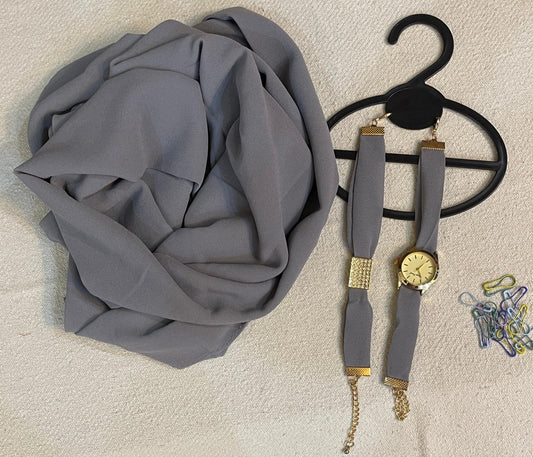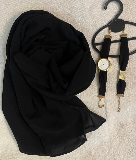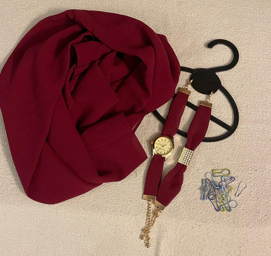 Watch, Bracelet and Simple Hijab Set - Tea Pink