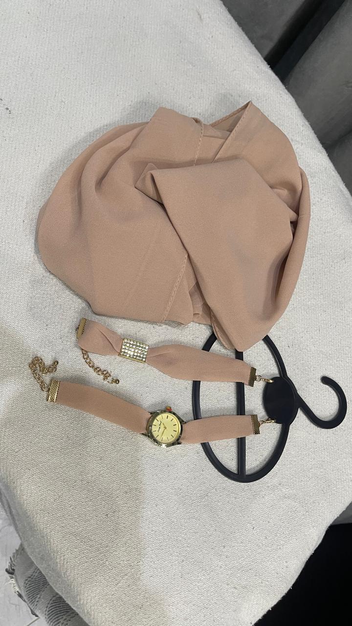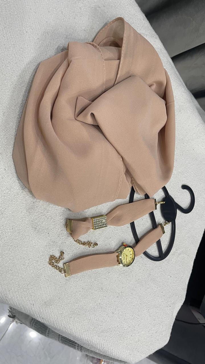 Georgette Hijab, Watch & Bracelet Gift Set- Faded Peach